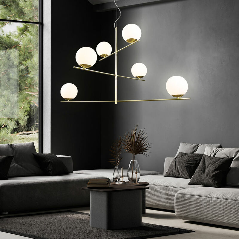 Descrizione Semplice e assolutamente elegante! Che si tratti di uno stile di arredamento semplice e diretto o di qualcosa di un po' più giocoso, le luci forniscono semplici accenti decorativi per dare ad ogni look un tocco di eleganza. Lo stile semplice è assolutamente contemporaneo e può essere combinato con elementi sorprendenti e discreti. Gli elementi orientabili della lampada a sospensione a sei fiamme possono essere allineati individualmente. La lampada è quindi perfetta per illuminare il tavolo da pranzo e sottolineare il proprio stile di vita. Il design puristaminimalista del PURE è un mix di metallo nobileottica in ottone opaco combinato con vetro bianco. Le lampadine non sono incluse! Particolare lampada • Tipo di lampada: lampada a sospensione • Materiale: metallo, vetro • Colore: ottone, bianco • Regolabile in altezza • Girevole • Grado di protezione: IP20 • Classe di protezione: 2 • Lunghezza x larghezza x altezza in cm: 115 x 80 x 150 • Peso: 2,85 kg • Prese: 6x E14