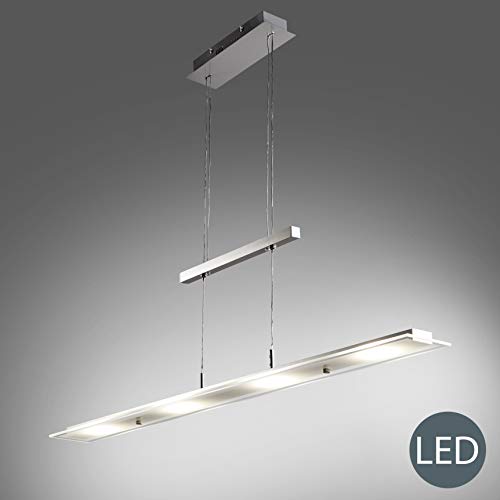 Lampada a sospensione LED regolabile in altezza, Lampadario cucina, Lampada da soffitto, Lampadario sospensione moderno, Vetro e Metallo color Nichel opaco include LED integrati, 18W 230V IP20