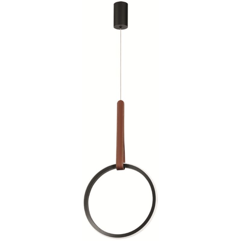 Lampada a sospensione Led REGOLI realizzata in metallo verniciato ed elemento in ecopelle. Cavetti regolabili in lunghezza. Perfetta da installare in un soggiorno o nel salotto di casa, questa lampada e' caratterizzata da un design moderno e molto particolare, e sapra' illuminare e arredare piacevolmente con un tocco di originalita' la vostra casa. CARATTERISTICHE Colore: Nero e cuoio Materiale: Metallo, ecopelle Tipologia: Lampada a sospensione Modello: Circle Altezza max: 209,5 cm Diametro: 30,5 cm Dimmerabile: Si Illuminazione: LED integrato Potenza: 12W 600-1200 LM Input: 220-230V Colore luce: 3000K