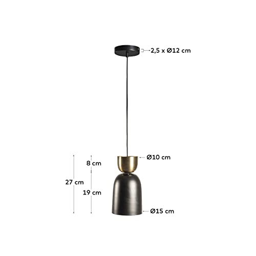 Lampada da soffitto con paralume in metallo con finitura nera e ottone.