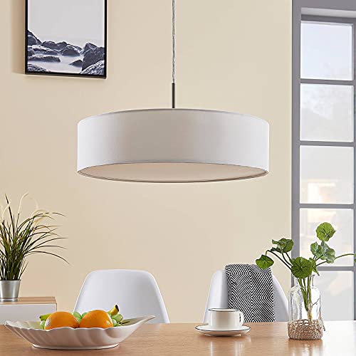 Lampada a sospensione 'Sebatin' dimmerabile (Moderno) colore Bianco, in Tessuto ad es. Cucina (3 luci, E27) di Lindby | lampada a sospensione in tessuto, lampada da soffitto, plafoniera in tessuto