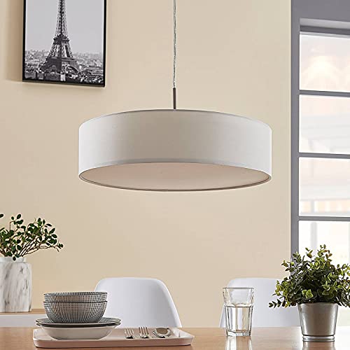 Lampada a sospensione 'Sebatin' (Moderno) colore Beige, in Tessuto ad es. Cucina (3 luci, E27) di Lindby | lampada a sospensione in tessuto, lampada da soffitto, plafoniera in tessuto, lampada