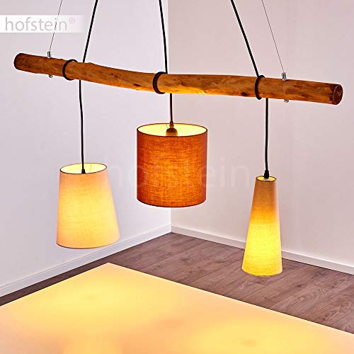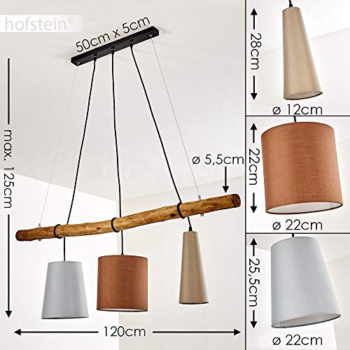 Lampada a sospensione Seegaard, lampada a sospensione in legno e paralumi in tessuto nei colori grigio/marrone rossiccio/natura, 3 luci, 3 x E27, lampada a sospensione moderna, senza lampadina/e