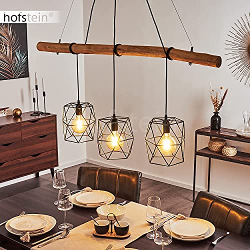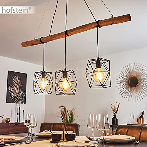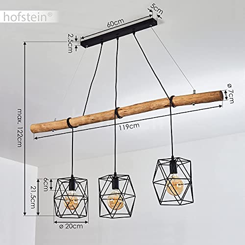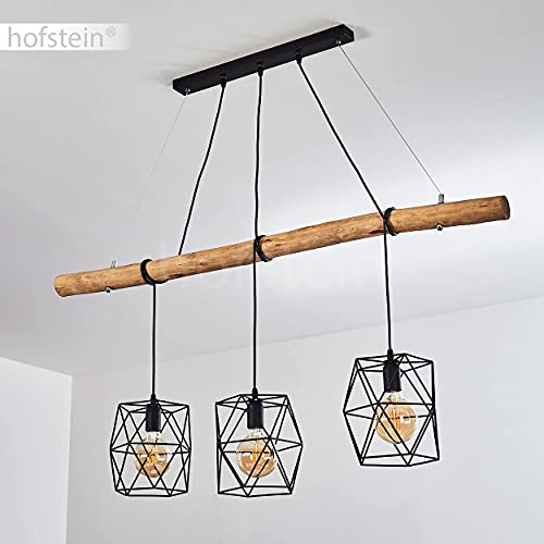 Lampada a sospensione Seegaard in metallo/legno in nero/marrone, a 3 luci, lampadine E27, max. 60 watt