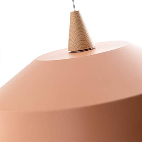 L+ Lampada a Sospensione da soffitto Moderna Attacco E27 in Metallo con elemento in legno (Terracotta, 35cm)