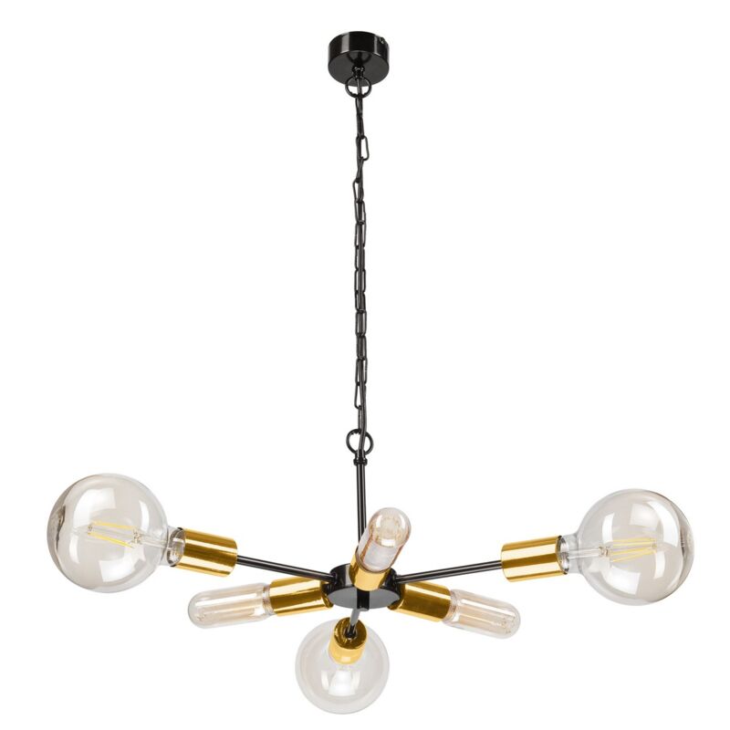 Questa lampada a sospensione è la soluzione perfetta per illuminare con stile la casa o l'ufficio. Grazie al suo design è ideale per la zona giorno e la zona notte. Kit di montaggio incluso, facile da pulire e facile da montare. Colore: Nero, Oro Materiale: Acciaio Set: 1 Dimensioni Prodotto: 34x34x74 cm Peso Prodotto: 1,50 Peso Supportato: - Info Lampadine: 6 x E27 max 60W Lampadina: Non Inclusa Dimensioni Imballo: 48x48x10 cm Peso Imballo: 2,00 Numero di Colli: 1