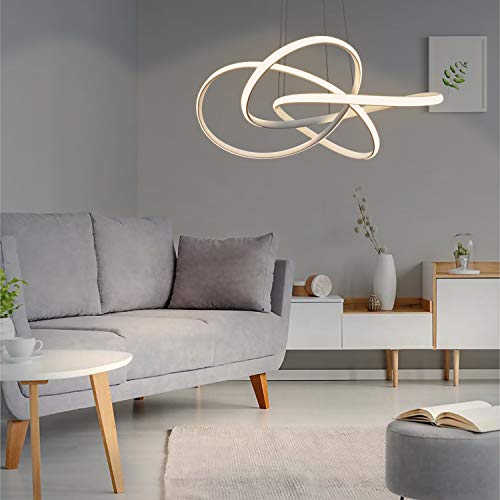 ZMH LED lampada a sospensione tavolo da pranzo bianco Ø62 CM anelli lampadario soggiorno 68W dimmerabile con telecomando regolabile in altezza illuminazione interna ristorante camera da letto