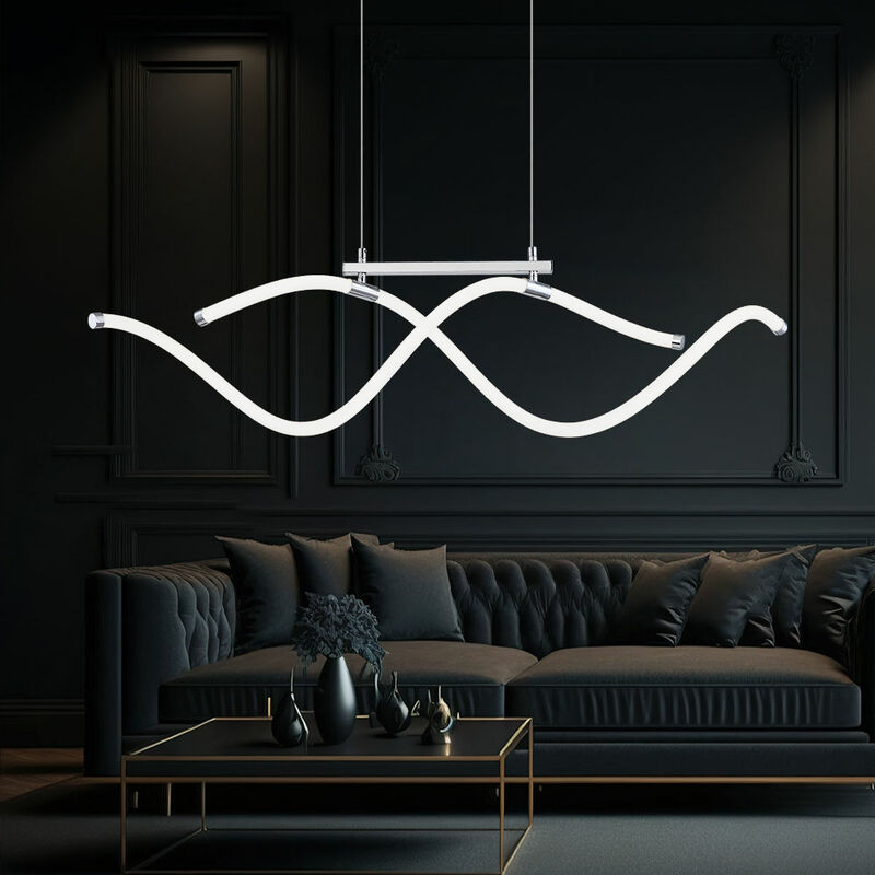 Descrizione Questa lampada a sospensione è semplice, moderna e senza tempo con due tubi curvi che possono essere commutati su 3 livelli utilizzando un interruttore a parete. Premendo più volte l'interruttore della luce (non incluso) è possibile regolare la lampada a sospensione su diversi livelli di luminosità (100%, 40%, 12%). La sorgente luminosa a LED è installata in modo permanente nella lampada. Lampada dettagli • Tipo di lampada: lampada a sospensione • Materiale: metallo, plastica • Colore: cromo, opale, bianco • 3 livelli tramite interruttore a muro (vedi descrizione) • regolabile in altezza • Grado di protezione: IP20 • Classe di protezione: 2 • Lunghezza x larghezza x altezza in cm: 102 x 22 x 120 • Sorgente luminosa: LED • Lampadine incluse: sì (installate in modo permanente) • Potenza lampada: 20 watt • Flusso luminoso: 1680 lumen • Colore della luce: bianco caldo • Alimentazione: 230V, 50Hz Dettagli lampadine • Tipo di lampadina: LED • Flusso luminoso: 1680lm (lumen)