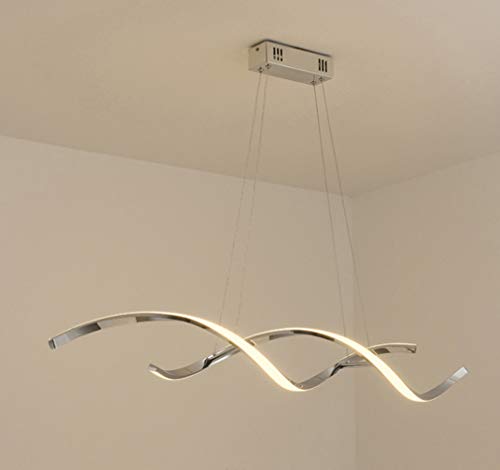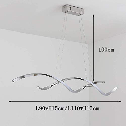 Lampada a Sospensione LED Tavolo da Pranzo Lampadari Ufficio, Lampadario Dimmerabile con Telecomando, Altezza Regolabile, Chic Design Plafoniera per Cucina Soggiorno Ristorante (Cromo, L90*H15cm)