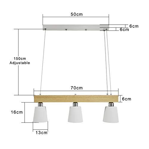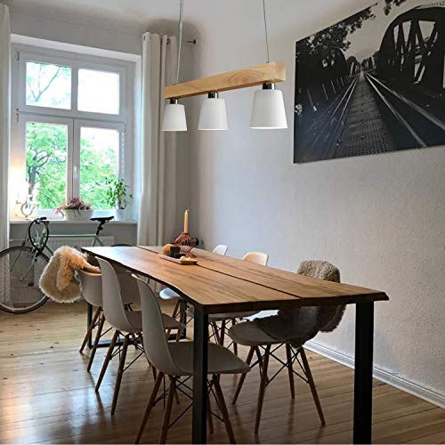 Lampada a sospensione a LED tavolo da pranzo in legno 3 fiamme lampada da tavolo da pranzo regolabile in altezza bianco caldo per sala da pranzo soggiorno ufficio ristorante, bianco, illuminante incl.