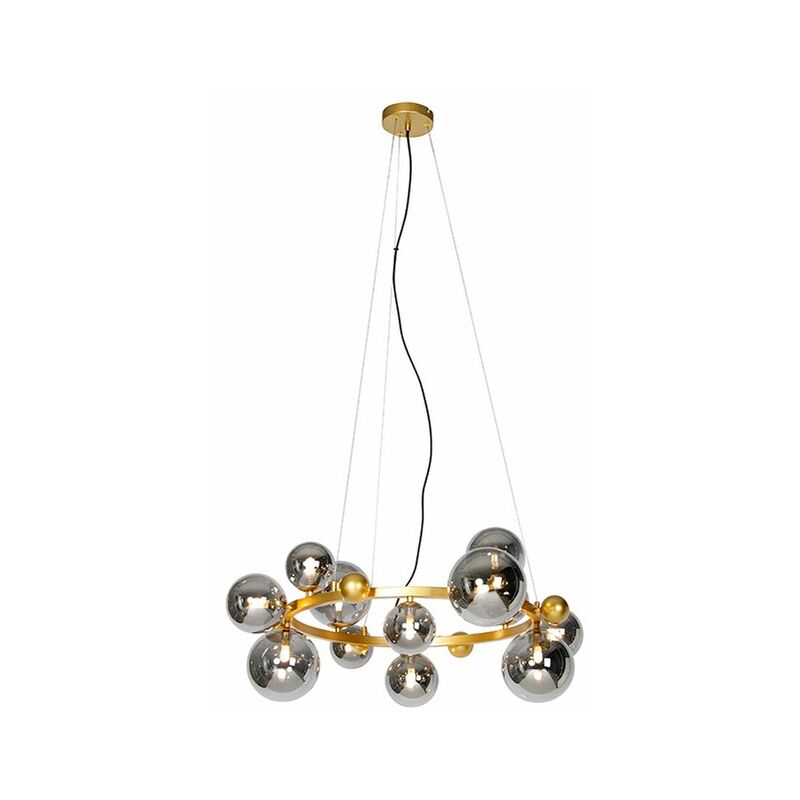 QAZQA Lampada a sospensione Art Déco oro con vetro fumé 12 luci - David Eleganza e stile sono fondamentali con la nostra serie David! Una bellissima lampada a sospensione Art Déco rifinita con un sorprendente apparecchio in oro e vetro fumé. Questa combinazione lo rende un vero colpo d'occhio, anche a luce spenta. Dispone di 12 punti luce: abbi cura quindi di 12 sorgenti luminose G9 (max. 28 Watt). Nota: le sorgenti luminose non sono incluse. La lampada ha un'altezza totale di 143 cm e un diametro di 86 cm. La piastra di montaggio ha un diametro di 12 cm. Il vetro fumé fornisce una luce d'atmosfera attenuata. Il tuo soggiorno, sala da pranzo, home office e ingresso acquistano una nuova dimensione con il nostro David! È una vera aggiunta elegante alla tua casa. Portalampada: G9 . Max 12 x 28 W, 230 V Adatto a: Algogene, LED Voltaggio: 220V/230V IP Classe di protezione: [IP20] A prova di polvere Funzioni extra: Regolabile: Dimmer escluso,No, senza cavo e spina Lampadine exclusiva Il