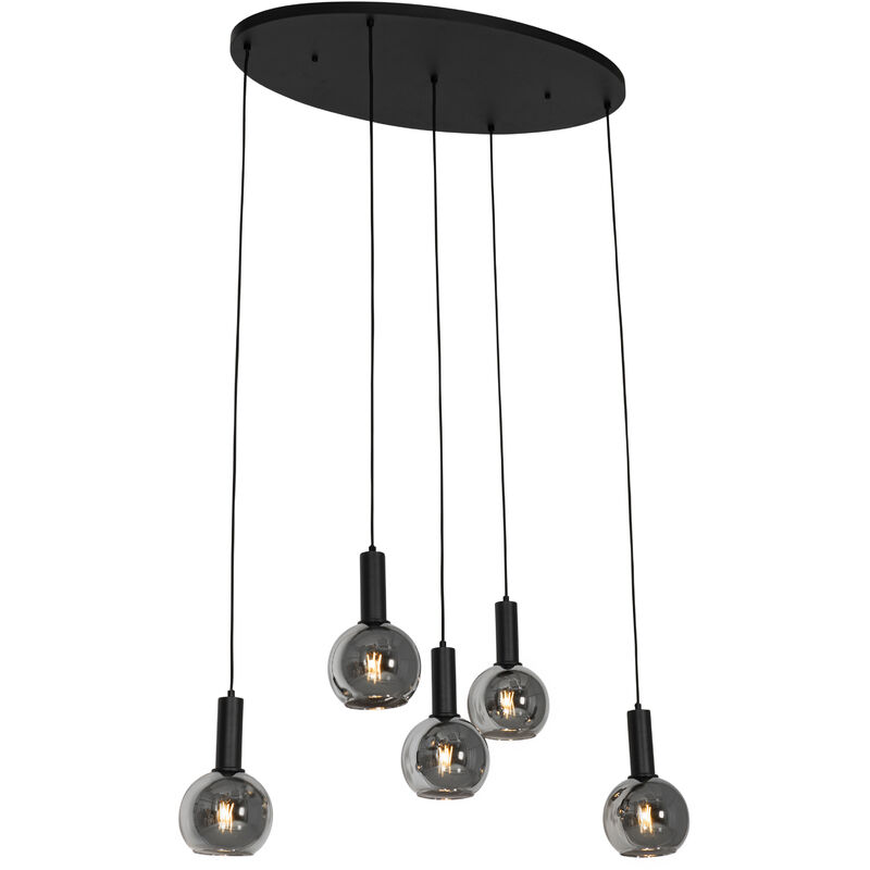 QAZQA Lampada a sospensione Art Déco nera con vetro fumé ovale a 5 luci - Josje La lampada a sospensione Josje è un must per un interno in stile Art Déco. Ha una finitura nera ed è realizzata in vetro. La lampada è lunga 89 cm, alta 149,5 cm e larga 40 cm. I 5 punti luce offrono un'illuminazione perfetta. Non dimenticare di ordinare separatamente le lampadine E27. Non sono incluse. Questa lampada a sospensione è dimmerabile, ma il dimmer non è incluso. I tuoi interni hanno ancora bisogno di un po' di atmosfera? Allora Josje è la scelta perfetta. Portalampada: E27 . Max 5 x 25 W, 230 V Adatto a: LED Voltaggio: 220V/230V IP Classe di protezione: [IP20] A prova di polvere Funzioni extra: Regolabile: Dimmer escluso,No, senza cavo e spina Lampadine exclusiva Il QAZQA Lampada a sospensione Art Déco nera con vetro fumé ovale a 5 luci - Josje è Nero. Gli spazi abitativi adatti per questa lampada sono: Luci da interno, Sala da pranzo, Ingresso, Studio, Cucina, Soggiorno, Showroom, Camera da