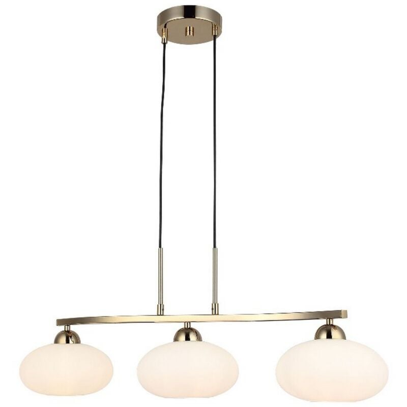 Questa lampada a sospensione è la soluzione perfetta per illuminare con stile la casa o l'ufficio. Grazie al suo design è ideale per la zona giorno e la zona notte. Kit di montaggio incluso, facile da pulire e facile da montare. Colore: Oro Materiale: Metallo, Vetro Set: 1 Dimensioni Prodotto: 23x82,5x97 cm Peso Prodotto: 2,90 Peso Supportato: - Info Lampadine: 3 x E27, Max 40W Lampadina: Non Inclusa Dimensioni Imballo: 30x78x18 cm Peso Imballo: 3,74 Numero di Colli: 1