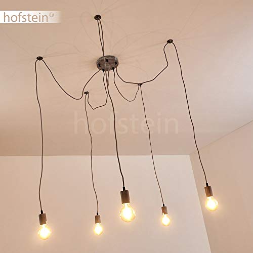 Lampada a sospensione Tenna, lampada a sospensione moderna in metallo in grigio, 5 luci con cavi tessili, 5x attacco E27, altezza massima 200 cm (regolabile), design retrò/vintage, senza lampadina/e