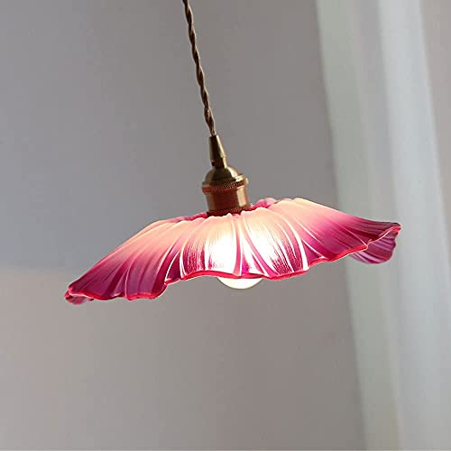 NZDY Mini Lampada a Sospensione a Testa Singola Fiore Viola, Creativa 30Cm/12In con Lampadario con Paralume in Vetro Decorato, Lampada a Sospensione da Comodino Camera da Letto Rosa Sfumato, Semplice