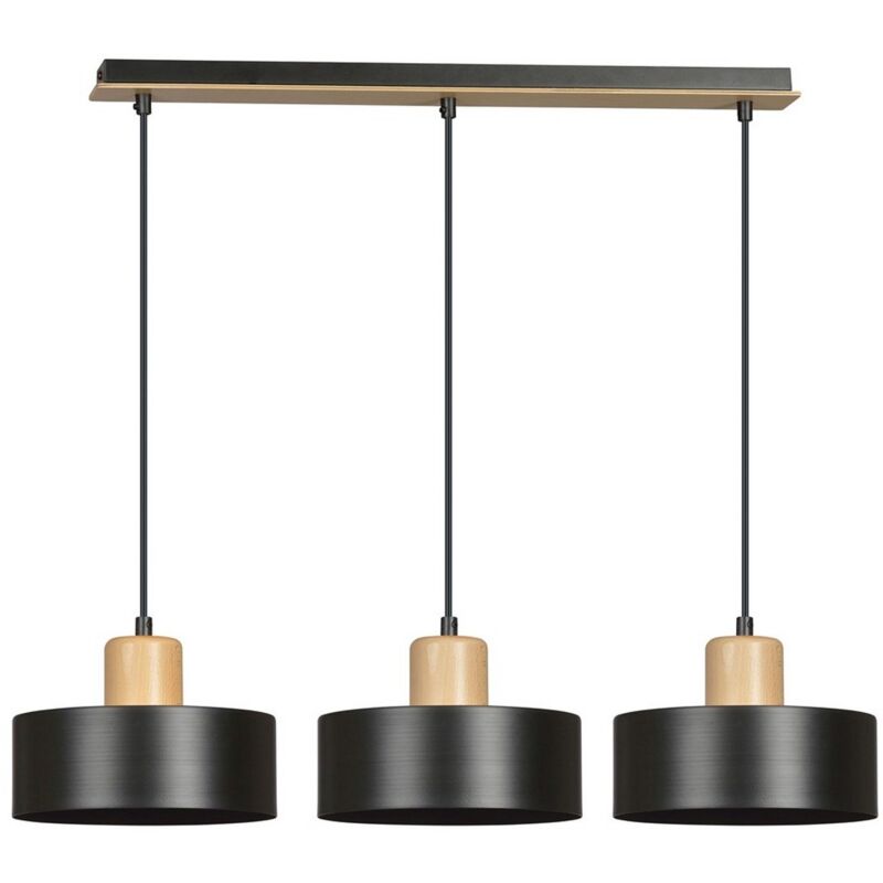 Questa lampada a sospensione è la soluzione perfetta per illuminare con stile la casa o l'ufficio. Grazie al suo design è ideale per la zona giorno e la zona notte. Kit di montaggio incluso, facile da pulire e facile da montare. Colore: Nero Materiale: Acciaio verniciato a polvere, Legno Set: 1 Dimensioni Prodotto: 80x100x25 cm Peso Prodotto: 3,00 Peso Supportato: - Info Lampadine: 3 x E27, 230V, 10W MAX LED, IP20 Lampadina: Non Inclusa Dimensioni Imballo: 67x21,5x23 cm Peso Imballo: 4,00 Numero di Colli: 1