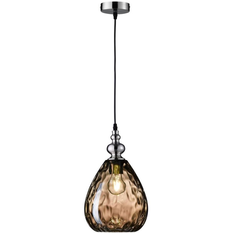 Lampada a sospensione ULLER E27 1x40W metallo color nichel opaco, vetro color ambra L: 20cm L: 20cm A: 140cm Ø20cm dimmerabile Dimensioni in mm: Lunghezza: 200, larghezza: 200, altezza: 1400, diametro: 200 Peso in kg: 1,2 Tipo lampadina/attacco: E27 Lampadine incluse: NO Potenza in watt: 1x40 Grado di protezione: IP20 Dimmerabile: SÌ Interruttore: NO Materiale alloggiamento: Metallo Alloggiamento colore: nichel opaco Materiale vetro/paralume: vetro Colore vetro/paralume: ambra