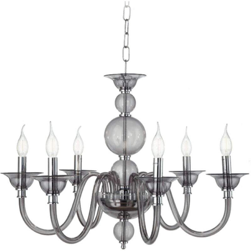 Lampadario TEBE realizzato in vetro lavorato a mano con particolari in metallo. Un elemento dalle linee tondeggianti e raffinate, ideale per illuminare e al tempo stesso arredare con particolare eleganza salotti, camere da letto e soggiorni contemporanei. CARATTERISTICHE Colore: Fume' Materiale: Vetro, metallo Tipologia: Lamapada a sospensione Modello: 6 luci Altezza max: 122 cm Diametro: 70 Dimmerabile: NO Illuminazione: 6 x E14 (L'attacco E14 permette di installare lampadine a LED, fluorescenti o alogene non incluse). Input: 220-230V