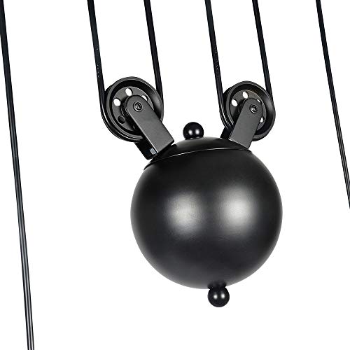 Lampada a sospensione vintage industriale, 3 teste E27 puleggia da interno lampadario da biliardo, sospensione stile ruota con Wave Retro regolabile (colore: nero)