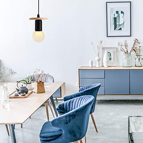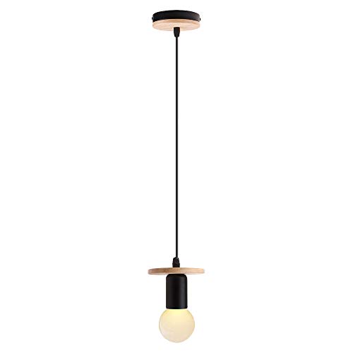 Lampada a sospensione vintage in legno, attacco E27, per camera da letto, hotel, soggiorno, caffetteria, negozio (nero)