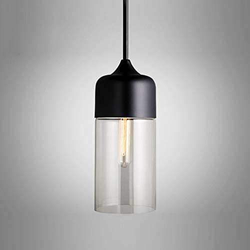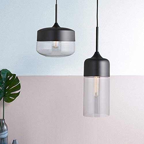 Lampada a sospensione vintage in metallo e vetro, lampada da soffitto con attacco per lampadina E27 (non inclusa), lampadario stile industriale, plafoniera moderna per sala da pranzo o cucina (C)