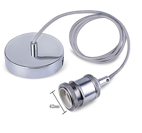 Lampada a Sospensione Vintage KIT Modern Retro Stile Industriale E27 Portalampade Tntrecciato Cavo in Tessuto Con Lunghezza Cavo Regolabile-Chrome