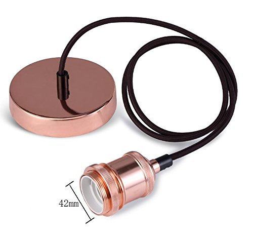 Lampada a Sospensione Vintage KIT Modern Retro Stile Industriale E27 Portalampade Tntrecciato Cavo in Tessuto Con Lunghezza Cavo Regolabile-Oro Rosa