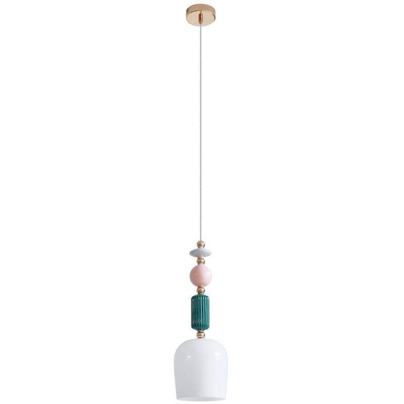 Lampada a sospensione Lindby Ysoria, grigio/rosa/verde, ceramica, Ø 16 cm Lampada di design: con questa pregiata ed esclusivamente lampada di design, conferite alla vostra abitazione o al vostro ufficio un tocco elegante e raffinato. Questa lampada di alta qualità è un prodotto Lindby. Lindby rappresenta la massima qualità e soddisfazione del cliente. L'aspetto prezioso di questa lampada risulta convincente in qualunque stanza. Dal soggiorno alla sala da pranzo, corridoio, cucina o persino in bagno. Questa lampada si inserisce perfettamente in qualunque ambiente. Atmosfera confortevole: con questa lampada, in ogni stanza e per ogni evento, create un'atmosfera specialmente accogliente. La qualità di questo prodotto è stata controllata e verificata dai nostri esperti. In caso di domande sul prodotto, non esitare a contattare il nostro servizio clienti tramite il nostro profilo di venditore Manomano. Lampada a sospensione colorata Ysoria con paralume in ceramica ed elementi decorativi di