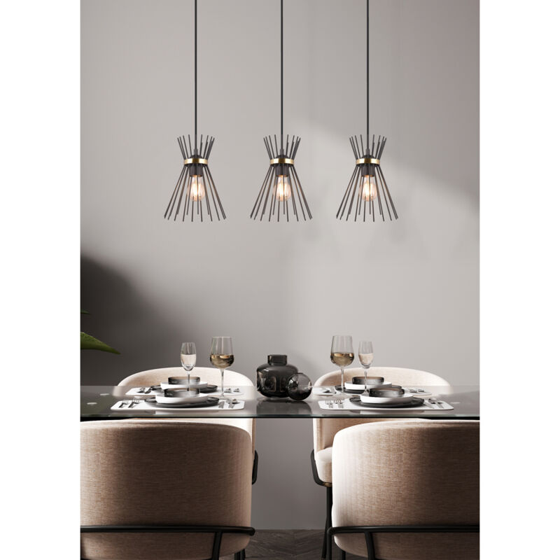 Lampada Sospesa Rod prodotta dal brand Trio Lightining. Con la lampada a sospensione a tre luci ROD farete centro. Questa lampada di tendenza in metallo elegante e filigranato può essere facilmente integrata in qualsiasi interno e mette in risalto aree selezionate come il bancone della cucina o la zona pranzo. Il gioco di luci e ombre creato dal design insolito emana un senso di nonchalance e leggerezza con un carattere di benessere. Il design filigranato-puristico in nero e oro attirerà l'attenzione con un fattore cool nella vostra casa. Per l'illuminazione a risparmio energetico si raccomanda l'uso di sorgenti luminose a LED. Queste sono un'alternativa ideale alle sorgenti luminose alogene tradizionali e offrono un'elevata qualità della luce e un risparmio energetico fino all'80%. Le sorgenti luminose a LED offrono inoltre una lunga durata e una bassa generazione di calore, proteggendo l'ambiente. Dimensioni: 82 x 20 x 150 cm.