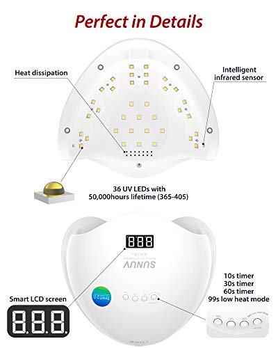 【Adatto a Tutti Gli Smalti per Unghie】 Le lampade per unghie SUNUV sono compatibili con tutti gli smalti per unghie in gel LED e gel per terapia UV, gel di estensione, gel per costruzioni dure, gel per sculture, tutti i top coat e la base per smalto gel a strati, inclusi colla per unghie UV, gel per ricostruzione, colla di pietre preziose, ecc.