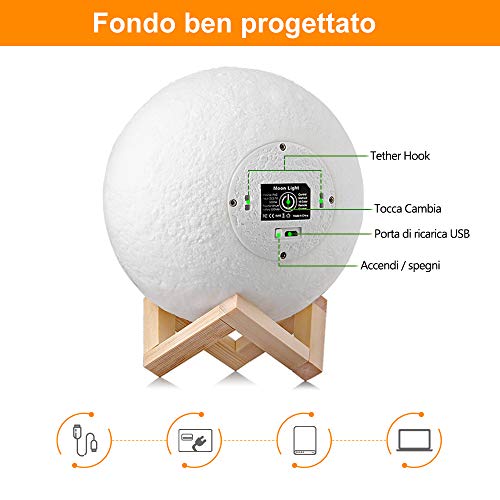 LAMPADA LUNA 3 COLORI CON TELECOMANDO: la lampada lunare mostra 2 bellissimi colori: bianco, giallo caldo. Tutti e tre i colori possono essere oscurati individualmente secondo le tue preferenze. soddisfatto del prodotto o rimborsato. Acquista senza preoccupazioni, siamo sicuri che adorerai la tua lampada Moon con stampa 3d.