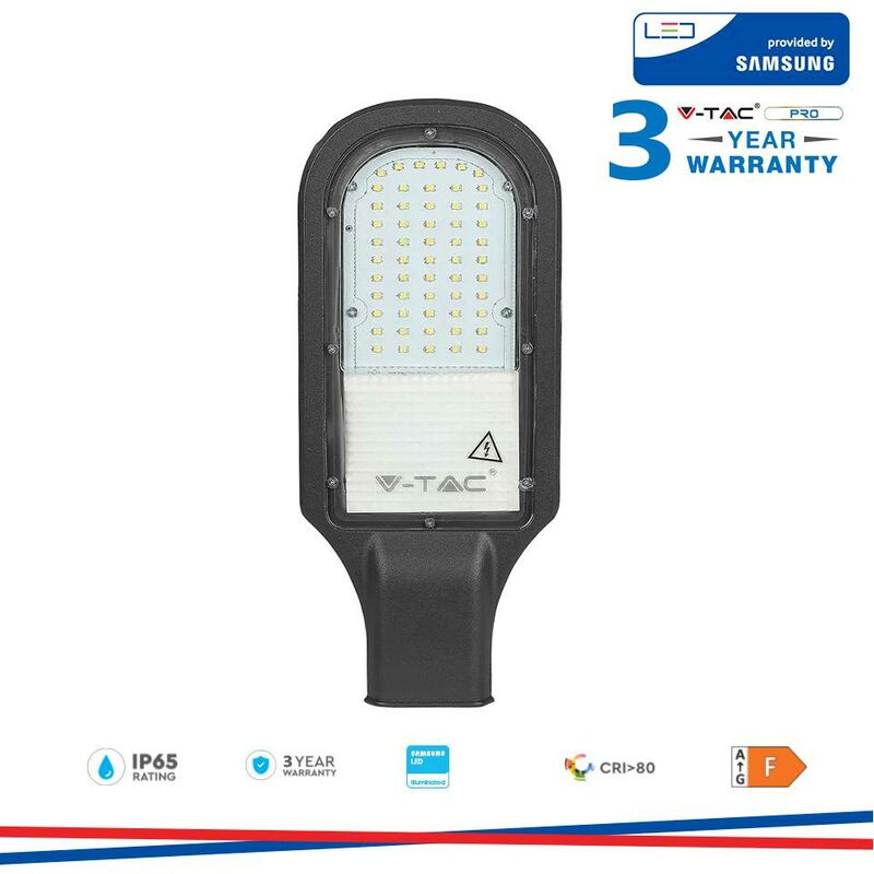Lampada Stradale LED SAMSUNG Chip 30W 6500K SKU: 21538: VT: VT-31ST Caratteristiche del prodotto Alternativa perfetta alle luci tradizionali 80% di risparmio sui costi dellenergia elettrica, Maggiore Efficienza, Durata Superiore Grado di protezione IP65 Lenti in vetro ottimizzate Distribuzione uniforme della luce - Massima efficienza Pienamente operativo in condizioni climatiche estreme fino a -20° Celsius Minima manutenzione e basso consumo di energia Ridotte emissioni di CO² Installazione Spazi esterni - strade, incroci, tunnel, parcheggi, impianti industriali etc. Specifiche tecniche Informazione generale Tipo LED SAMSUNG Chip Vitamedia 25 000 ore Dati elettrici Potenza 30W Tensione AC: 220-240V Frequenza 50Hz Fattore di potenza >0.9 Dati tecnici luce Fascio Luminoso° 110° Colore della luce Bianco Temperatura di colore 6500K Flusso luminoso (lm) 2350 lm Indice di resa cromatica Ra >80 Dettagli corpo Colore Nero Materiale Alluminio Funzionalità IP Protezione IP65 Tempo innesco