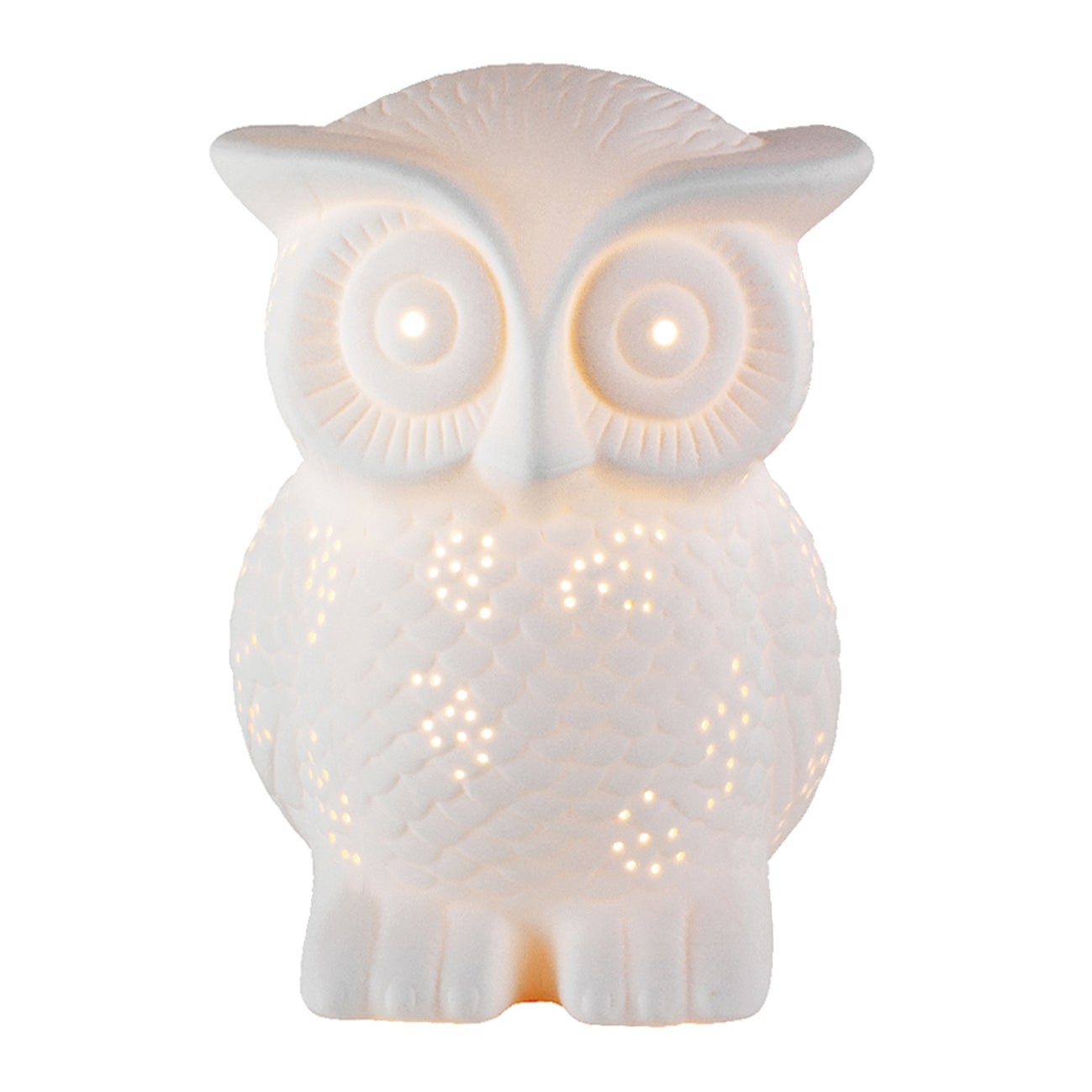 Struttura In ceramica bianca, lampada da comodico a LED a forma di Gufo, attacco E14 (piccolo).