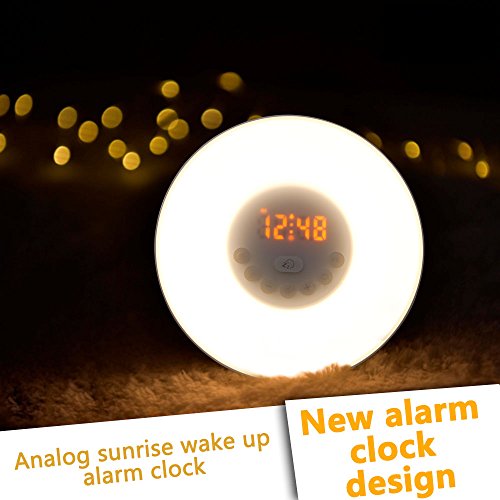 Simulazione alba e tramonto: sotto la modalità sunrise, questo sveglia delle variazioni della luce diventa gradualmente illuminata dall'1% al 100% per farti uscire da un sonno profondo e pronto per un nuovo giorno;