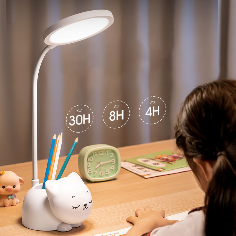 Design innovativo - Il corpo della lampada è progettato con motivi a fumetti. e la forma è vivace e carina, il che è molto apprezzato. dalla maggior parte dei bambini. La parte in silicone può essere impastata e non si deforma facilmente. Può suscitare l'interesse dei bambini per l'apprendimento ed è molto adatto ai bambini per usarlo per imparare e leggere. 【Lampada per la protezione degli occhi】 La lampada da scrivania a LED per bambini utilizza una piastra di guida ottica con un'elevata trasmissione visibile. Previene efficacemente l'affaticamento degli occhi causato dall'abbagliamento e può proteggere bene gli occhi. Anche leggere di notte e studiare fuori. a lungo termine non danneggia gli occhi. 【Angolo girevole】 La lampada da scrivania a LED ha una base antiscivolo e un design antiscivolo. collo d'oca girevole con braccio flessibile. Il tubo della lampada può essere ruotato e l'altezza e l'angolo confortevoli possono essere regolati secondo necessità. Rendi la distribuzione