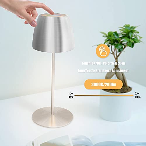 Lampada da tavolo a batteria senza fili ricaricabile dimmerabile portatile lampada da tavolo LED con interruttore touch e RGB cambia colore, IP54 per lettura lavoro bar Interna Esterna (argento)