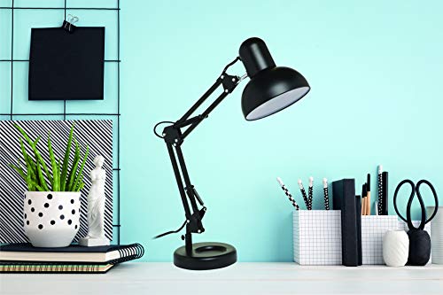 Lampada da tavolo con braccio snodato regolabile e girevole, per lettura, studio o lavoro, stile retrò, industriale, vintage, laccato nero