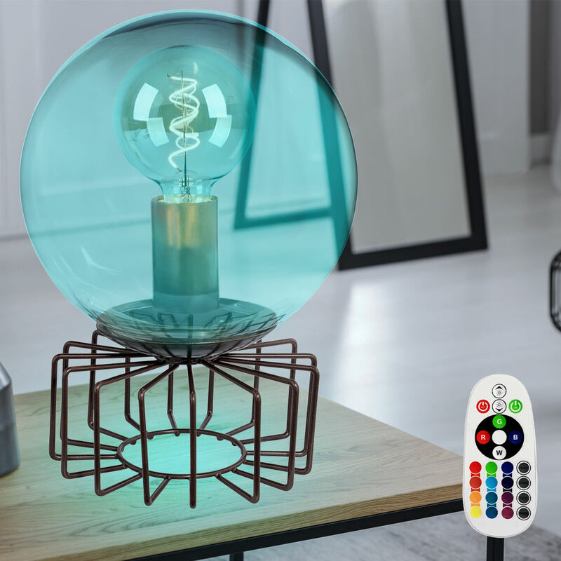 Descrizione Questa lampada da tavolo colpisce per il suo design futuristico e allo stesso tempo semplice. La combinazione di metallo color bronzo e vetro color fumo rendono questa lampada un vero e proprio eye-catcher. Con altri modelli di questa serie puoi completare il quadro nelle tue stanze. Utilizzando il telecomando in dotazione, la lampadina LED RGB può essere impostato in diversi colori e quindi garantisce un'illuminazione d'atmosfera. Rispetto ai normali apparecchi di illuminazione, i faretti a LED consumano solo una minima quantità di elettricità e sono ancora più bassi nei consumi rispetto alle lampade a risparmio energetico. Questo ti salva l'ambiente e il tuo portafoglio. Una lampada LED RGB di alta qualità a risparmio energetico con telecomando per luce bianca e controllo RGB è incluso nella fornitura! Dettagli lampada • tipo di lampada: lampada da tavolo• materiale: metallo, bronzo• paralume: vetro, fumo• switch• classe di protezione: IP20• lunghezza cavo in cm: 150