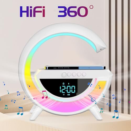 ✢Facilità d'uso: nell'altoparlante wireless è inclusa una funzione di ricarica rapida per telefono cellulare da 15 W. È molto utile e comodo caricare proprio smartphone appoggiandolo su una lampada da scrivania. Oltre a dover essere collegato, telefono deve essere in grado di ricaricare senza fili.