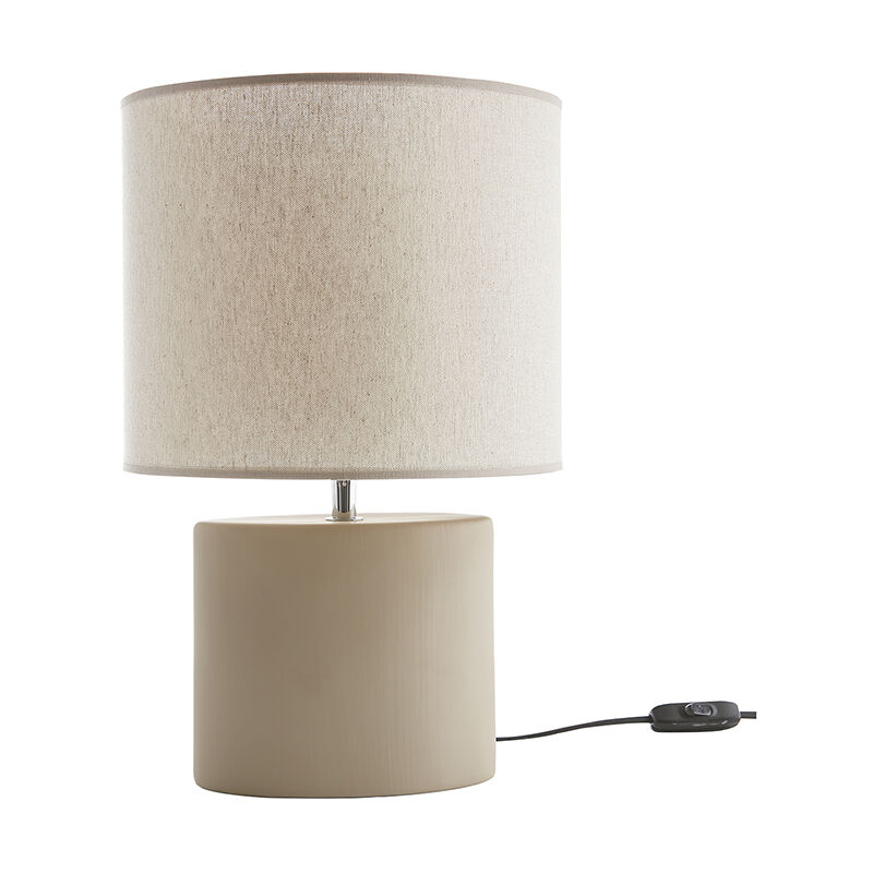 Semplice e raffinata, al tempo stesso grezza e dalle linee epurate, la lampada da tavolo TIGA dall'elegante contrasto riscalda l'atmosfera negli ambienti che seguono le tendenze attuali e che puntano sui dettagli ricchi di fascino. La base ellittica in ceramica color talpa opaco si armonizza perfettamente con il paralume cilindrico, le cui bordure in cotone naturale si fondono con il lino, in un elegante gioco di materiali naturali dai colori tono su tono. Uno stile contemporaneo intriso di poesia grazie a cui questa piccola lampada design color talpa si integrerà perfettamente in innumerevoli ambienti! Lampada da comodino o lampada ausiliaria, le sue dimensioni (L25 x L25 x H40 cm) sono ideali per dare un'impronta di carattere a una camera da letto, un soggiorno o un ufficio. Altrettanto funzionale quanto decorativa, questa piccola lampada da tavolo declinata in color talpa e lino sarà perfetta per dare risalto a un mobile o a una consolle in un ingresso. Il suo paralume in lino