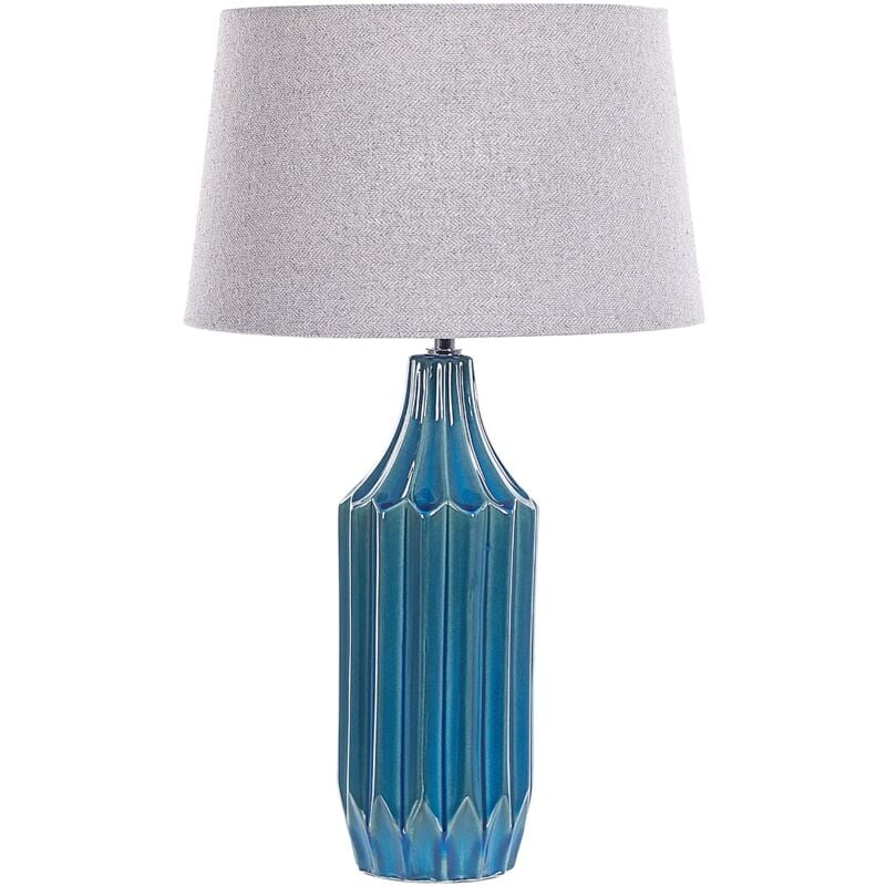 Lampada da tavolo dallo stile classico. Questa versatile lampada da tavolo è la scelta ideale per la camera da letto o la zona giorno. Realizzata in ceramica di altissima qualità, presenta una stabile base a coste con finitura lucida, per una casa davvero di classe. Dettagli: Tipo di prodotto: Lampada da tavolo Stile: Moderno Colore principale: Blu Tonalità: Foglia di tè Tipo di materiale: Ceramica Materiale principale: Ceramica Materiale secondario: Cotone Materiale della base: Ceramica Materiale del paralume: Lino Composizione del materiale: 65% lino Potenza elettrica: Max. 40W Finitura: Brillante Codice IP di protezione: IP 20 Lampadine richieste: 1 Voltaggio: 230 V (50 Hz) Dimensioni: Dimensioni della base: 15x15 Lunghezza del cavo: 150 cm Profondità: 35 cm Larghezza: 35 cm Altezza: 56 cm Peso: 2 kg L'offerta include: 1 x Lampada da tavolo, Non include: Lampadine Caratteristiche chiave: Luce soffusa, per un'atmosfera rilassante, Pratico interruttore, Ideale sia per la camera da