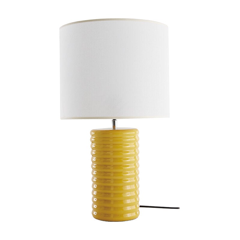 Illumina l'ambiente con la lampada da tavolo BERRO ! Con il suo design extralarge, la sua struttura in ceramica, BERRO segna il ritorno sulla scena delle grandi lampade da tavolo, tipiche degli anni Settanta. Con la sua raffinata semplicità, questa lampada dalle morbide ondulazioni ci riporta alla mente la Costa Azzurra. A metà tra lo stile retrò chic e moderno, la sua silhouette bicolore si adatta sia a un arredo contemporaneo che a un ambiente dalle influenze vintage. Sormontata da un paralume cilindrico in cotone écru orlato da una bordura naturale, la base slanciata in ceramica smaltata è declinata in un giallo brillante: un binomio di grande effetto! La luce è diretta principalmente verso l'alto e filtra anche attraverso il paralume, creando un'atmosfera rilassante e ovattata. La lampada BERRO è dotata di un cavo in plastica nero lungo 200 cm (con interruttore ). Collocato su una credenza o una consolle, questo complemento d'arredo a tutto tondo non è destinato al solo