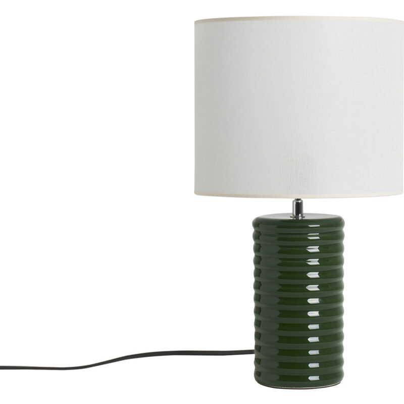 Illumina l'ambiente con la lampada da tavolo BERRO ! Con il suo design extralarge, la sua struttura in ceramica smaltata, BERRO segna il ritorno sulla scena delle grandi lampade da tavolo, tipiche degli anni '70. Con la sua raffinata semplicità, questa lampada dalle morbide ondulazioni ci riporta alla mente la Costa Azzurra. A metà tra lo stile retrò chic e moderno, la sua silhouette bicolore si adatta sia a un arredo contemporaneo che a un ambiente dalle influenze vintage. Sormontata da un paralume cilindrico in cotone écru orlato da una bordura naturale, la base slanciata in ceramica smaltata è declinata in un morbido colore verde: un binomio di grande effetto! La luce è diretta principalmente verso l'alto e filtra anche attraverso il paralume, creando un'atmosfera rilassante e ovattata. La lampada BERRO è dotata di un cavo in plastica nero lungo 200 cm (con interruttore ). Collocato su una credenza o una consolle, questo complemento d'arredo a tutto tondo non è destinato al