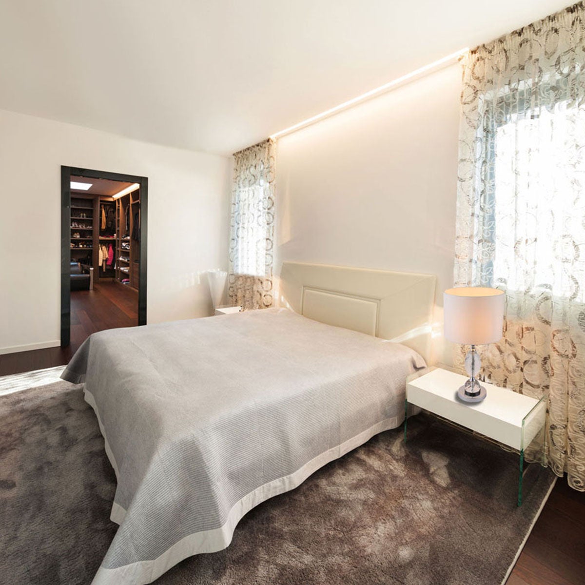 Lampada tavolo in tessuto, 1 lampadina non inclusa, attacco E14, wattaggio massimo 60W. Ideale per creare una luce diffusa e accogliente nella stanza. Struttura flessibile che permette di modificare la direzione della luce