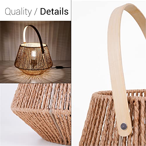 Paco Home Lampada Da Tavolo Lampada Da Comodino Lampada Da Lettura Paralume Cesto Deco Boho E27, Tipo di lampada:Tipo 2, Colore:Natura