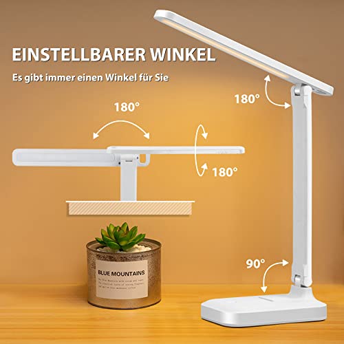 Risparmio di spazio: la lampada da scrivania a LED può essere regolata liberamente in più angolazioni, pieghevole, comoda per riporre oggetti, luce nel corpo, facile da trasportare, utilizzata in ufficio, biblioteca e camera da letto. Il pannello a sfioramento può essere utilizzato come supporto per telefono cellulare. Superficie in similpelle, semplicità bianca.