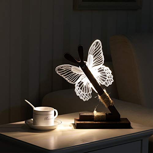 Lampada da tavolo 3D creativa, in acrilico, con farfalla, idea regalo, luce notturna a LED, per camera da letto, a risparmio energetico, lampada da comodino, dimmerabile