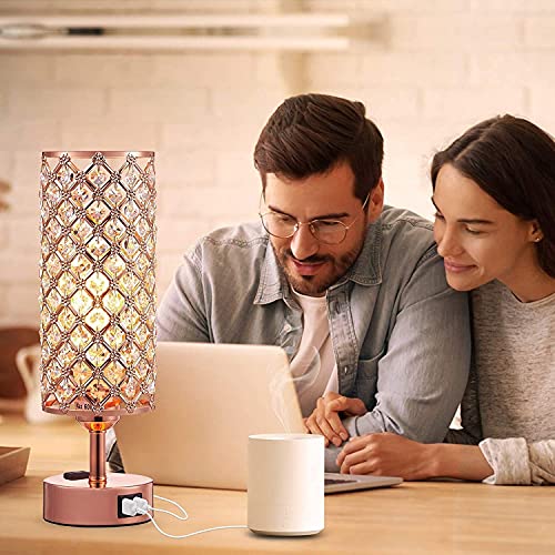 Lampada da tavolo in cristallo di controllo tattile,lampada da comodino dimmerabile con doppio USB Porti di ricarica,lampada da tocco dimmerabile a 3 vie con sfumatura di cristallo,for camere da letto