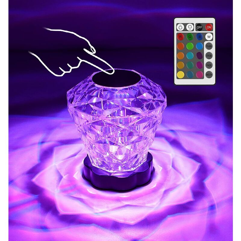 Lampada di cristallo romantica - Con un design unico a forma di diamante, può essere proiettato sul tavolo uno per uno, fornendo 16 colori RGB e 4 modalità di illuminazione dinamica, e la romantica lampada in cristallo rosa riflette effetti di luce luminosi e colorati per creare un'atmosfera romantica.【Colore dimmerabile】 La lampada che cambia colore può regolare la luminosità dell'1% -100% attraverso il telecomando per soddisfare le diverse esigenze. La luce rosa touch fornisce 2000K-4000K luce morbida e accattivante che può proteggere i tuoi occhi. Perfetta come lampada da comodino per rilassarsi o addormentarsi.【Telecomando touch】 La lampada da tavolo touch offre due modalità operative: touch e telecomando. Scegli facilmente il tuo colore preferito e la modalità di luce in base al tuo umore. Decora il tuo salotto per un'esperienza di lusso diversa.【Luce di ricarica a lunga durata della batteria】 Batteria incorporata da 1500 mAh, che può essere caricata completamente entro 3 ore