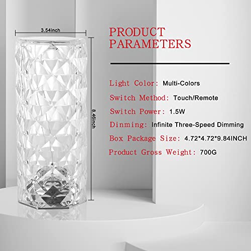 Design elegante e di alta qualità: la lampada da tavolo in cristallo è realizzata con materiali di cristallo acrilico di alta qualità, l'aspetto è finemente lucidato e la superficie tagliata è a forma di rosa. Il motivo squisito mappato sul pavimento dopo aver acceso la luce è il nostro design unico.
